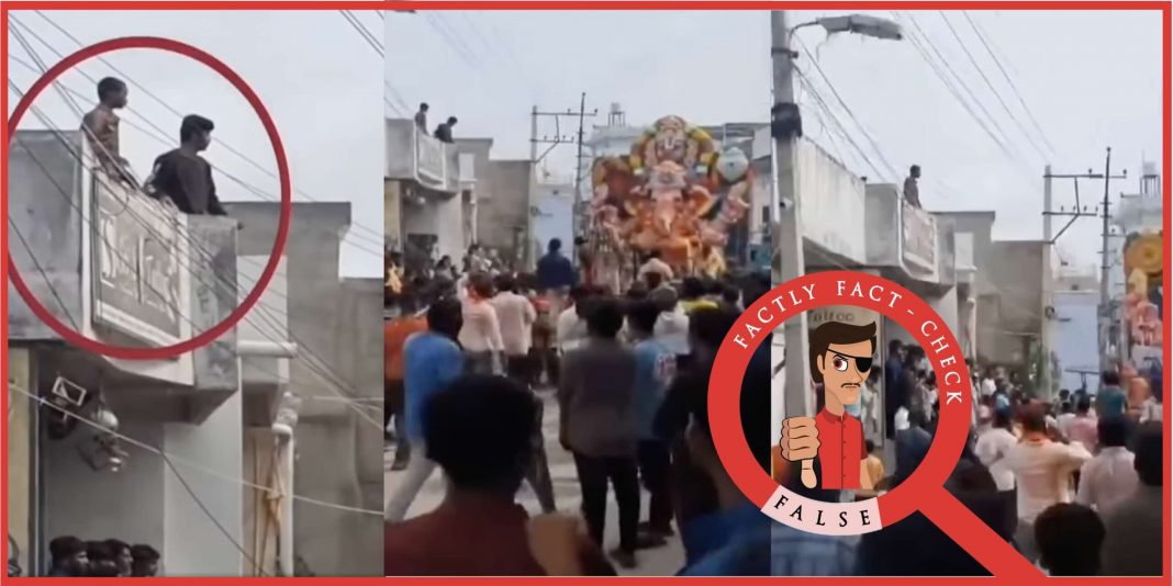 A video (here, here and here) is going viral on social media claiming to show two persons, alleged to be Muslims, pelting stones at a Ganesh immersion rally, which led to a clash. Let’s uncover the truth behind this video.