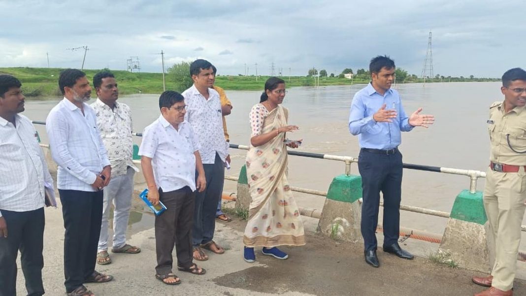 Deputy Commissioner of Yadgir Harshal Bhoyar visited rain-hit areas, including the submerged bridge at Kollur village, to take stock of the situation.